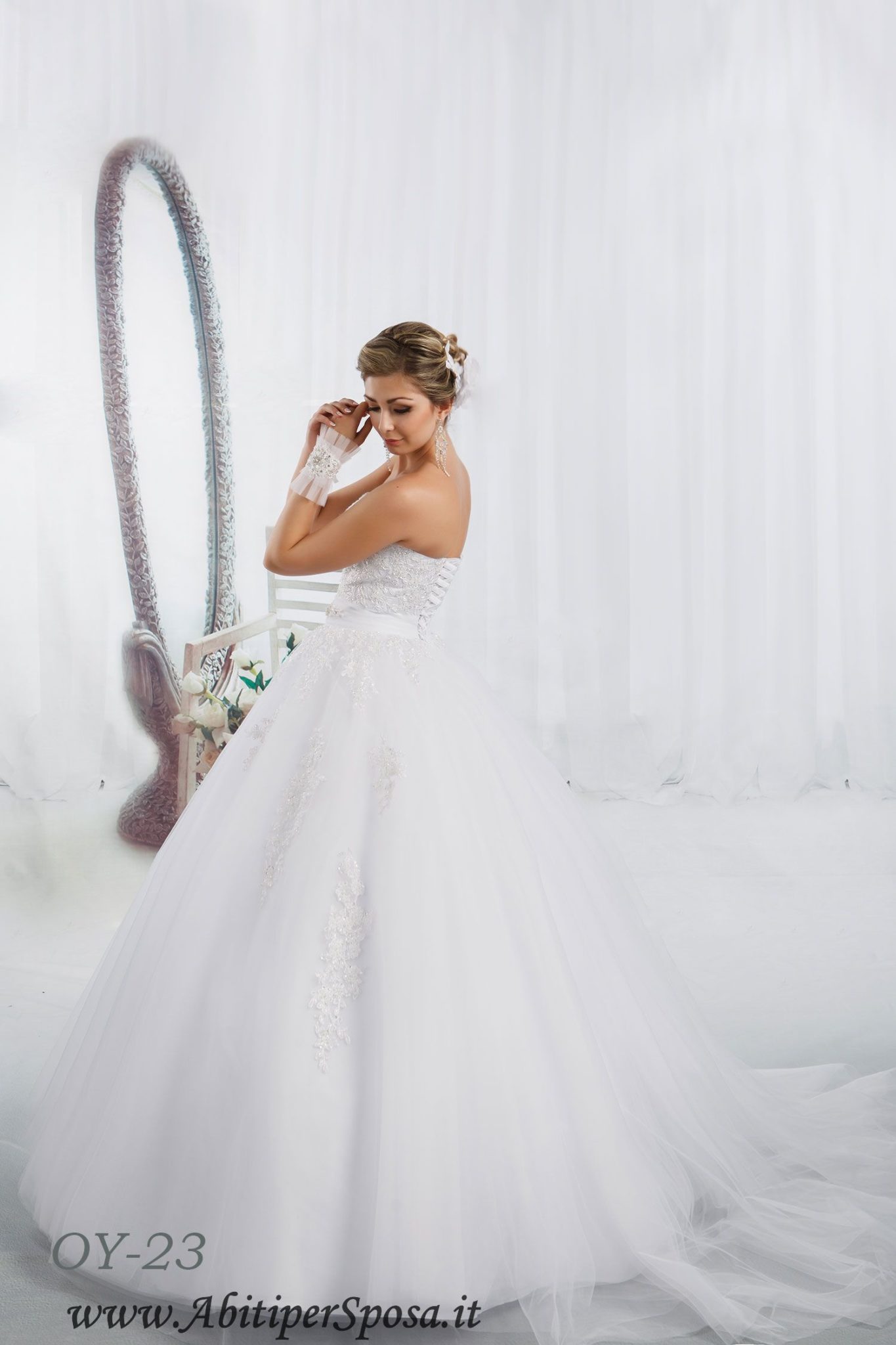 Inviaci un’email a info@abitipersposa.it con la foto dell’abito, ti risponderemo subito e senza impegno con un preventivo personalizzato.