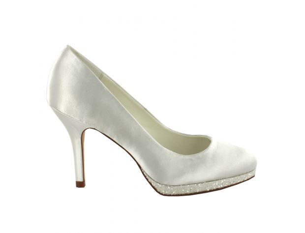 Scarpe sposa chiuse. Colore bianco seta. Altezza tacco 10 cm, plateau scintillante 1,5 cm.